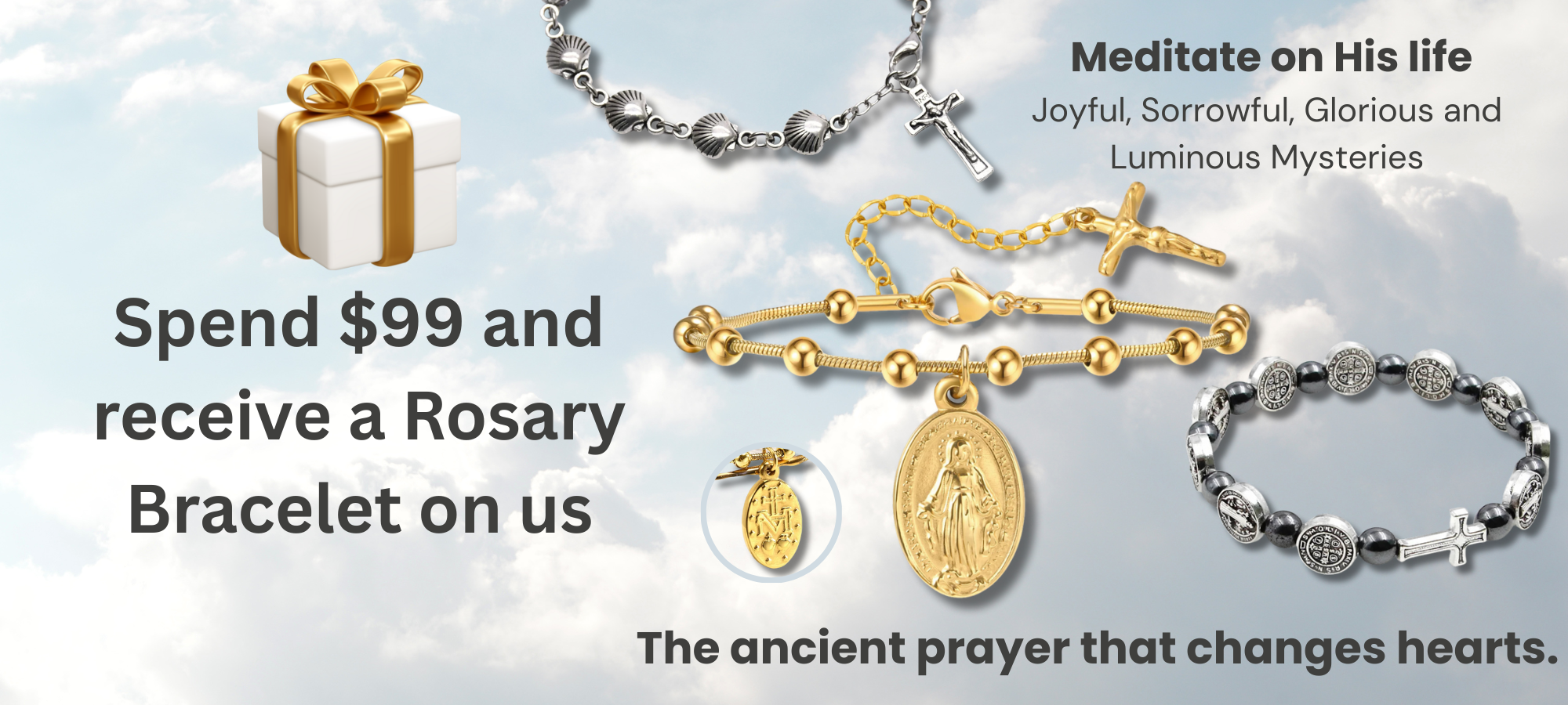 Spend $99 in apparel and receive a Rosary bracelet on us. Discount automatically applied at checkout!