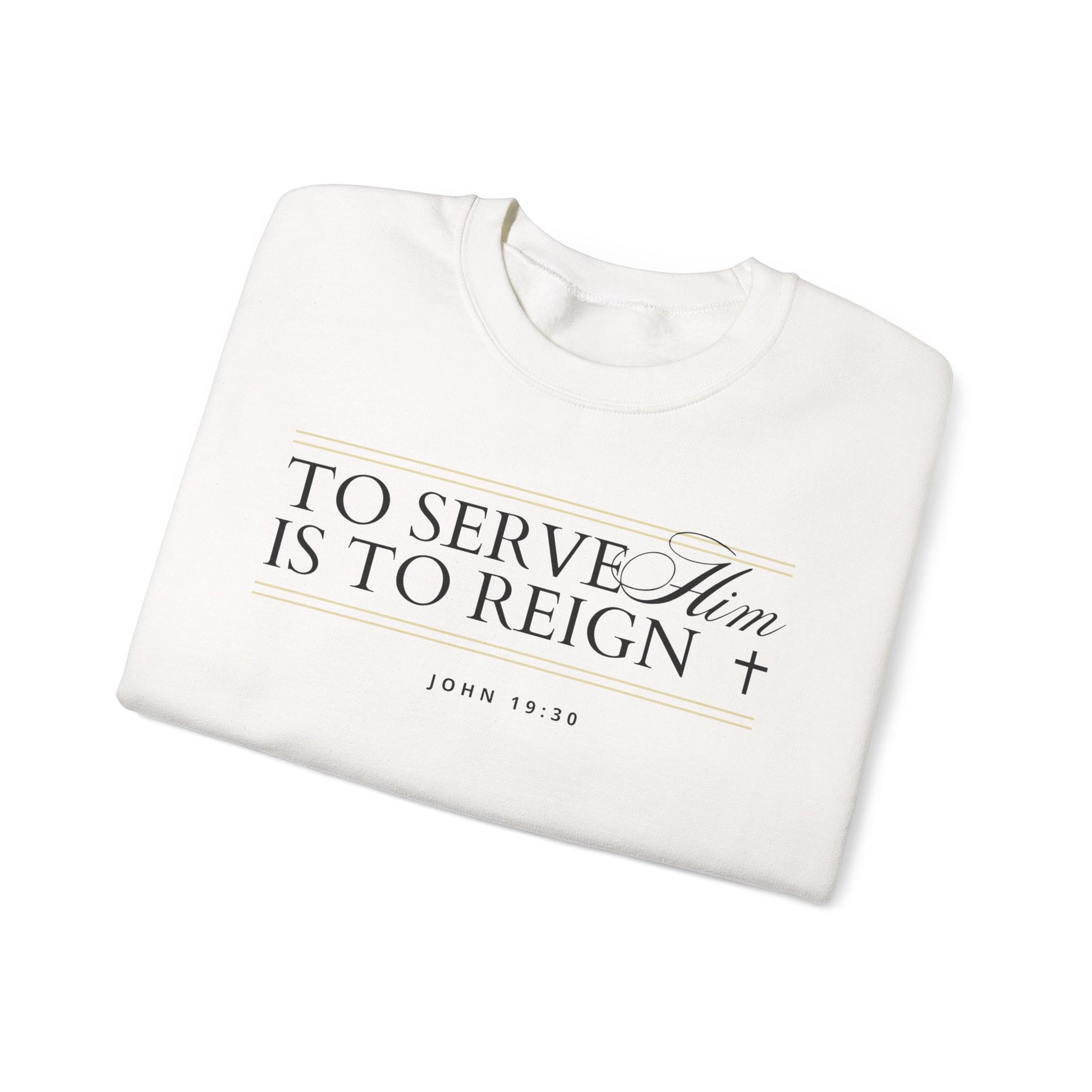 Make a bold display of truth with our “To Serve Him Is to Reign” crewneck in white — featuring John 19:30 across the front and a minimal crucifix detail on the sleeve. This is more than clothing; it’s a declaration that Christ is King and that true victory begins with surrender to Him. Crafted for comfort and impact, this sweatshirt turns everyday wear into testimony. Stand firm. Speak truth. Serve the One Master.